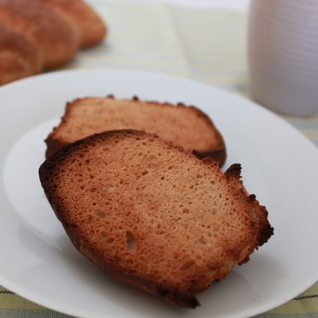 Når bollerne er bagt og kølet af, så prøv også at opvarme ovnen til 230 g varmluft, skær en bolle over og rist den i ca 10 minutter. Server med hjemmelavet marmelade og en god kop urte-te.