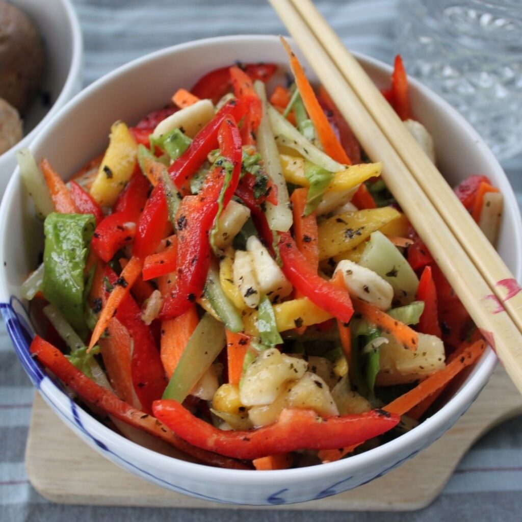 Uhmm.. dette er en virkelig lækker spicy salat, som bl.a. også kan bruges som aftensmad, fordi den har en fantastisk umami smag, og smagsløgene er i hvert fald tilfredse!