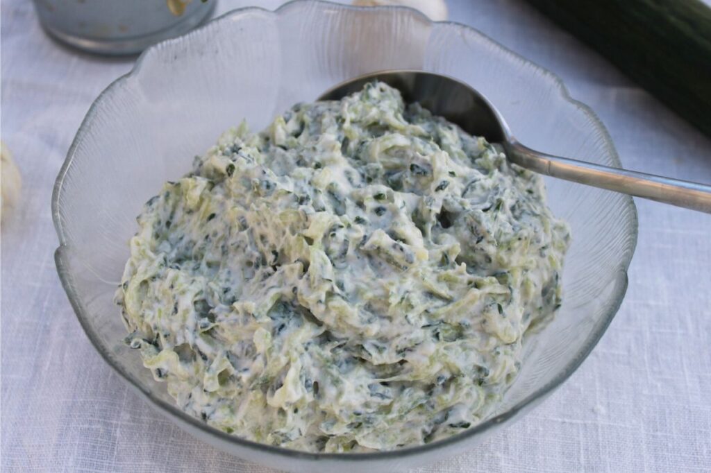 Hvis du ønsker en mindre fed udgave kan du lave halv portion af dressingen, men stadig bruge 3 hele agurker. Det giver stadig en dejlig smag, og oplevelsen af at få tzatziki.