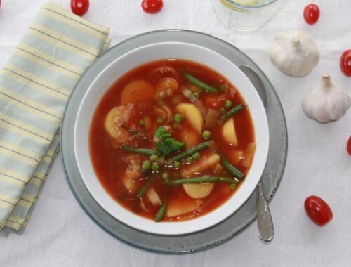 Retten smager dejligt uden ketchup, men hvis du ikke har ketchup uden no-gos, og ønsker lidt tomatsmag, kan du tilsætte koncentreret tomat og lidt ekstra ahornsirup, når du laver den indledende væde med løg i: Altså før kartoflerne kommer i. Men som sagt, synes jeg sagtens retten kan spises uden at tilsætte ketchup eller tomat.